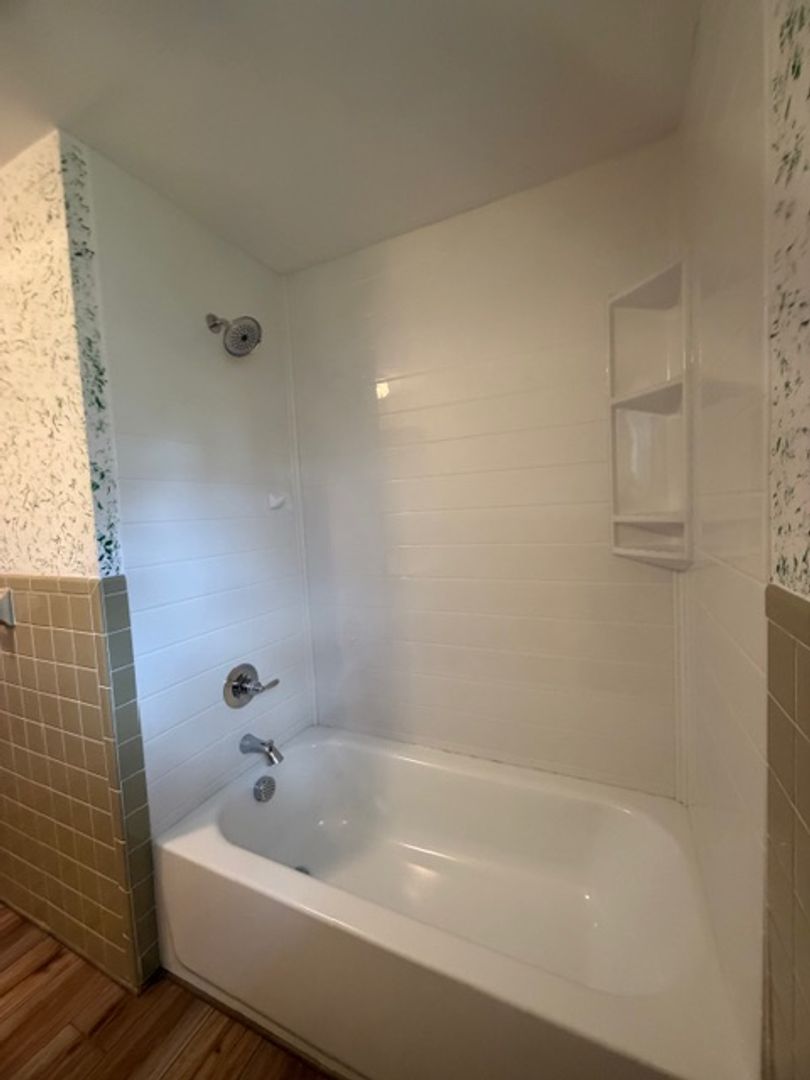 The spacious primary bedroom has a new walk in shower and oversized walk in closet. The exterior has a carport and a cozy covered back porch. Lawn maintenance is included in the rent.